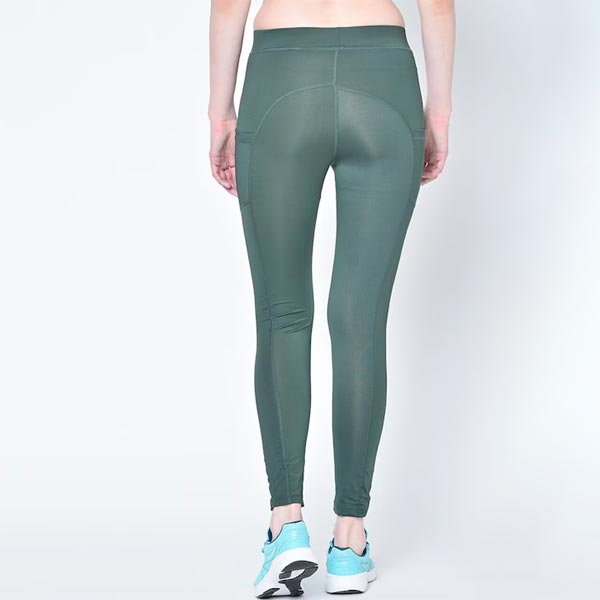 Sports WearA pair of green solid stretchable yoga tights, has an elasticated waistband & slip-on closure and two side pockets